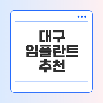 대구 지역에서는 여러 치과에서 임플란트 시술을 제공합니다. 여기에 인기 있는 몇 개의 치과를 추천드립니다.